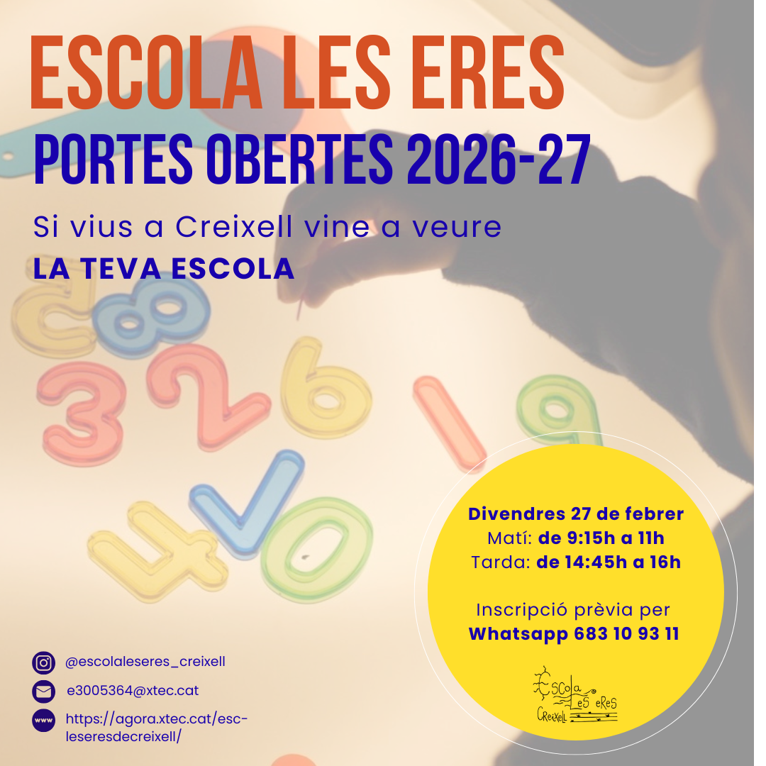 Oferta inicial de places a l’Escola Les Eres per al curs 2026/2027.
