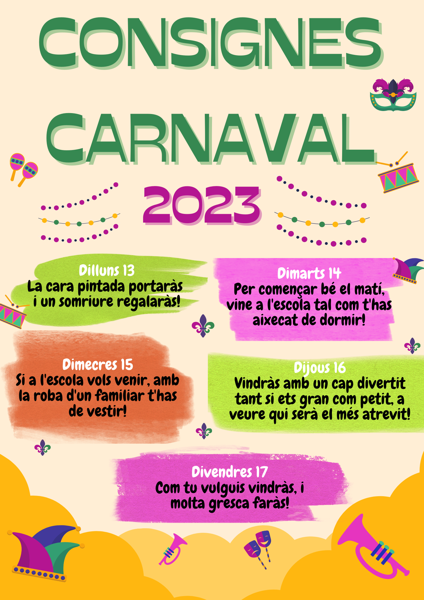 Ja tenim el Carnaval aquí! Us deixem les consignes per la setmana que ve. Esteu a punt? Que bé que ens ho passarem!