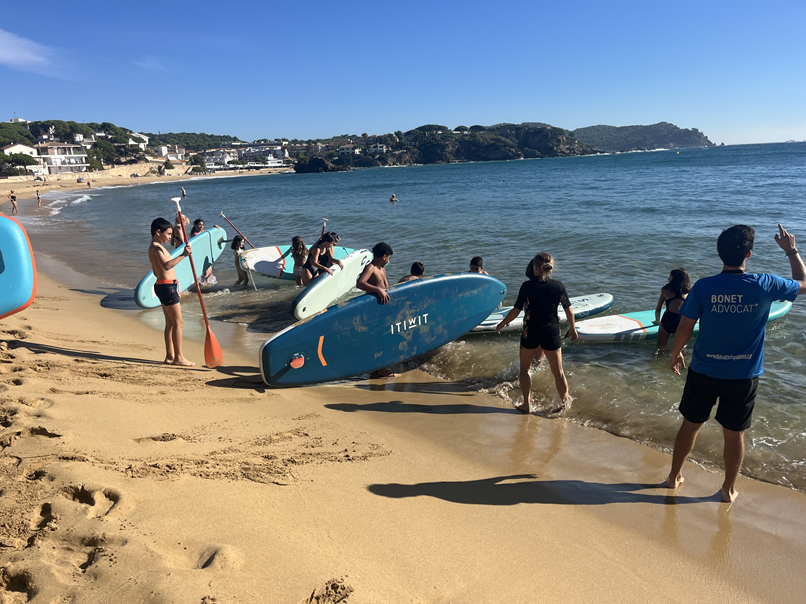 Dijous passat, amb l’alumnat de CS vam anar a la platja de la Fosca a fer unes activitats de resistència i equilibri a la sorra i paddle surf a l’aigua amb el club Natació Palamós. Ens ho vam passar molt bé i el temps ens va acompanyar. Quin bon dia i quina calor.