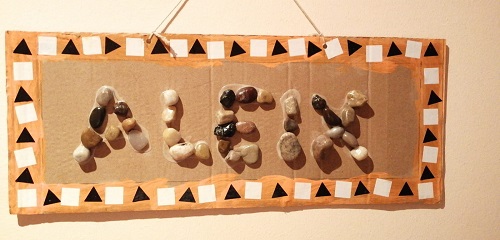Els nens i nenes van anar a buscar pedres amb algun familiar seu (pare, mare, avi, iaia…) i després les van portar a la classe. També van portar de casa un cartró amb unes mesures específiques.