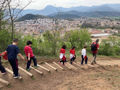 Divendres 26 de Març els alumnes de 3r vam fer una sortida a Olot, així que tancàrem el 2n trimestre pujant a un ritme exemplar un seguit d’escales fetes amb troncs que no tenen fi… per arribar al cràter del volcà Montsacopa que mesura 120m de diàmetre i 12m de fondària i es troba centrat al cim del con volcànic i la seva forma de copa és la que dóna nom al volcà.