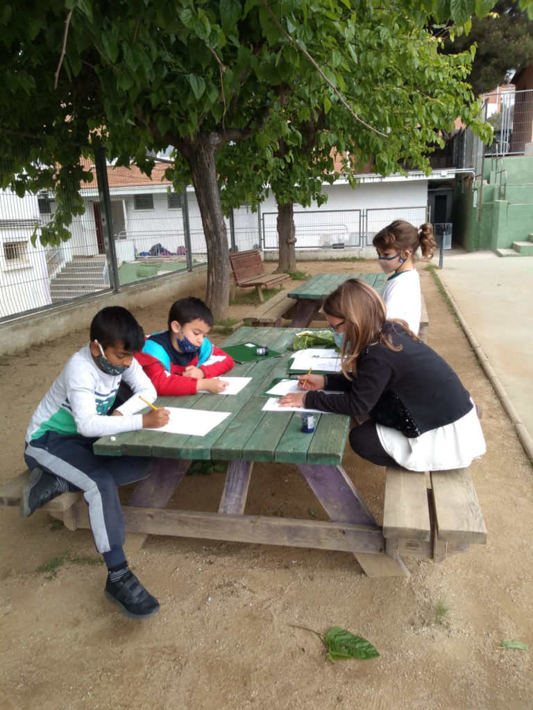 Aquestes darreres setmanes estem treballant el tema de les plantes. Hem sortit al pati i en grups cooperatius hem fet l’observació dels arbres més propers: la morera, el pi, el xiprer, el cedre, el nesprer i també la palmera. Ens hem repartit la tasca i cada equip ha fet l’observació d’un arbre, que també han