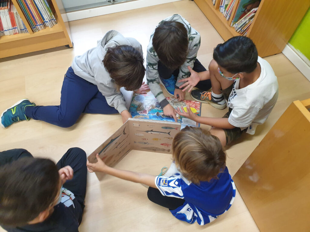 Els nens i nenes de segon vam fer la nostra primera visita a la biblioteca municipal, P. Fidel Fita. L’Anna Danés ens va preparar els llibres que li havíem proposat sobre els temes que hem treballat aquest inici de curs a medi natural , volcans i món marí. Hem pogut emportar-nos a l’aula uns quants