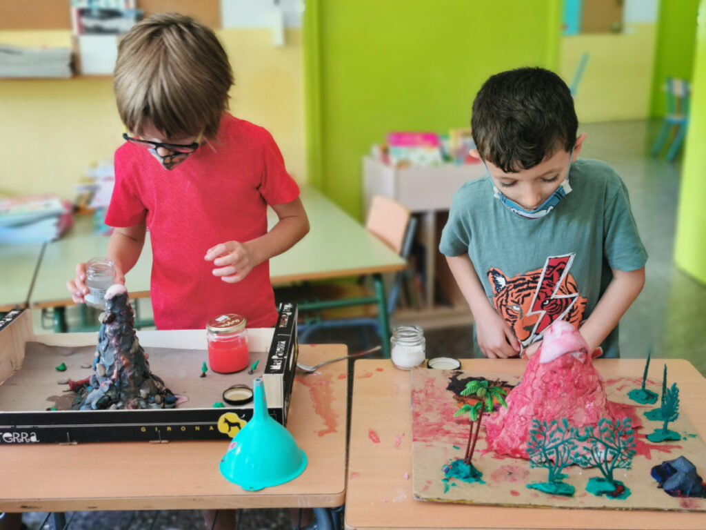 Arran de l’erupció del volcà de La Palma ens hem interessat pels volcans i n’hem fet a les aules. Hem reproduït l’erupció d’un volcà mitjançant l’experimentació.