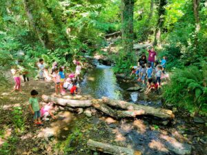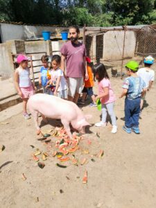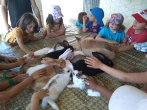 Hem gaudit de la natura en un entorn preciós i hem fet moltes activitats: plantar i regar enciams, donar menjar als animals de la granja, portar les oques al riu, baixar per tobogans naturals, buscar els caus dels animalons del bosc. Ah!, i a la nit hem fet una poció màgica per en Drac Bernat que tenia mal de panxa.