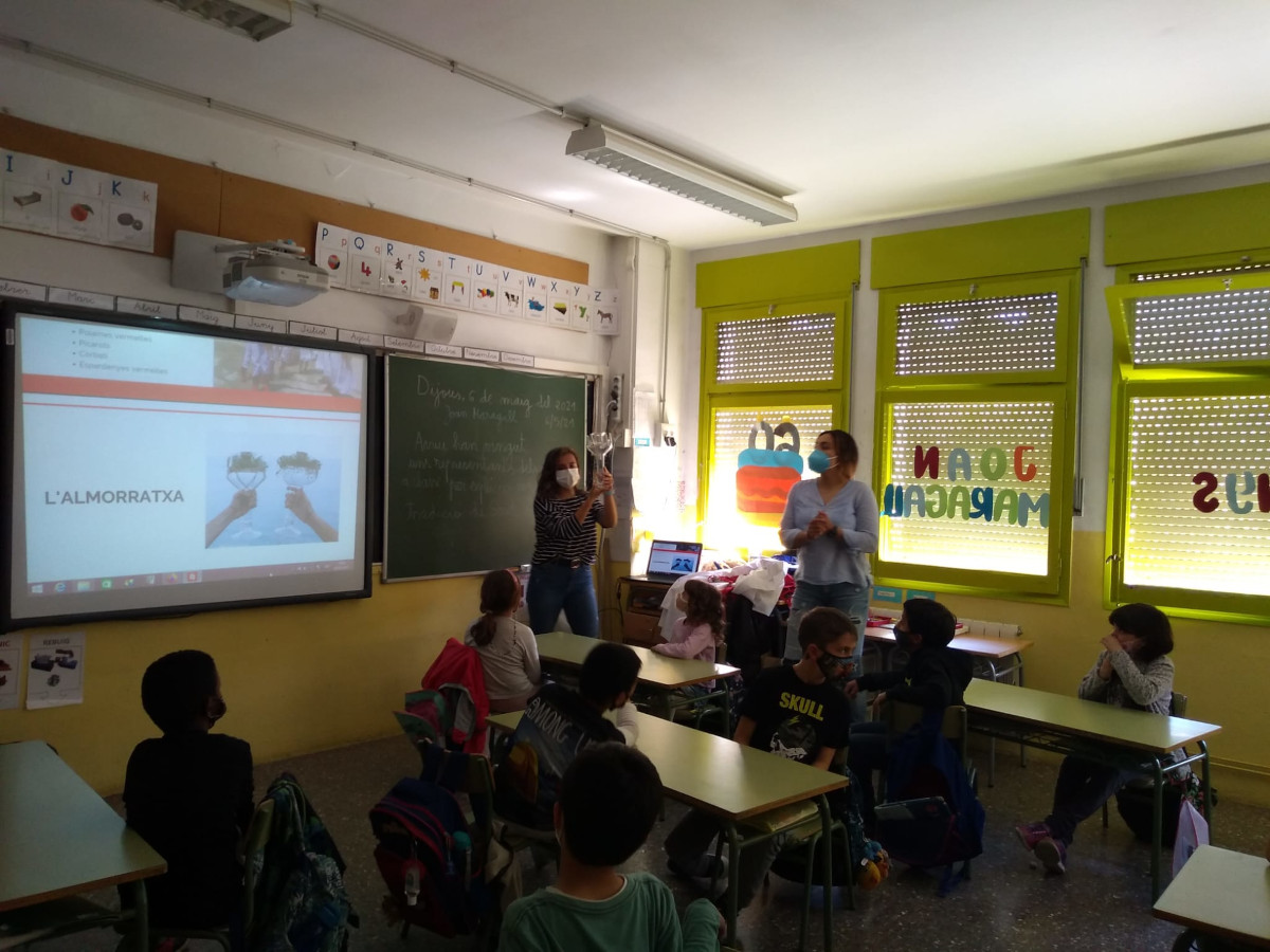 I seguint amb el tema de la cultura i tradició del nostre poble, rebem a classe la visita de dues noies macips que ens parlen de la festa i tradició de Sant Roc.