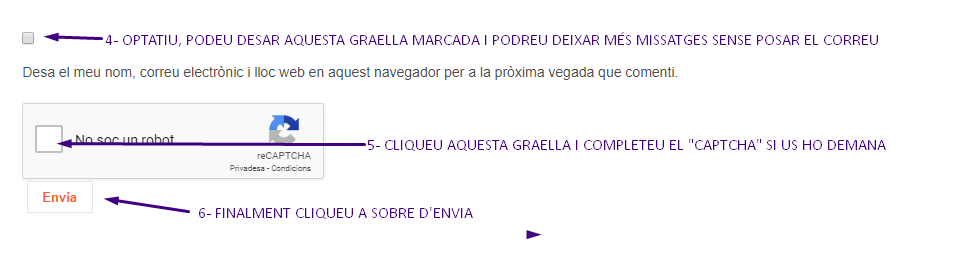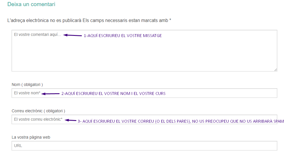 Ara us toca a vosaltres tornar aquest carinyo i aquesta estima, així que la tasca d’avui d’informàtica és molt senzilla, he activat els comentaris de la pàgina, només us demano que, si en voleu, deixeu un missatge molt carinyòs a la vostra mestra. Ara us detallo el que heu de fer per deixar un missatge.