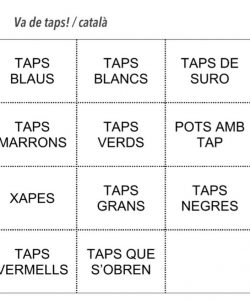 Lògica: Amb els taps de diferents colors, mides i formes que teniu podeu fer una classificació seguint les característiques dels taps. Aquí teniu unes etiquetes que us ajudaren.