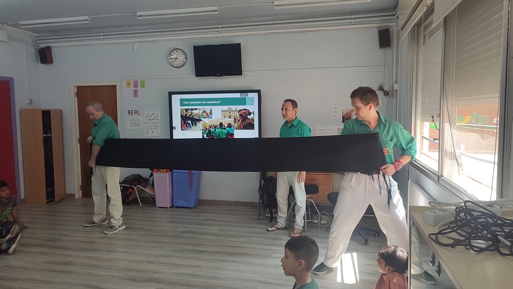 Els Castellers i les Castelleres de segon de primĂ ria hem tingut una visita molt especial: han vingut els Castellers de lâHospitalet a fer-nos un taller.