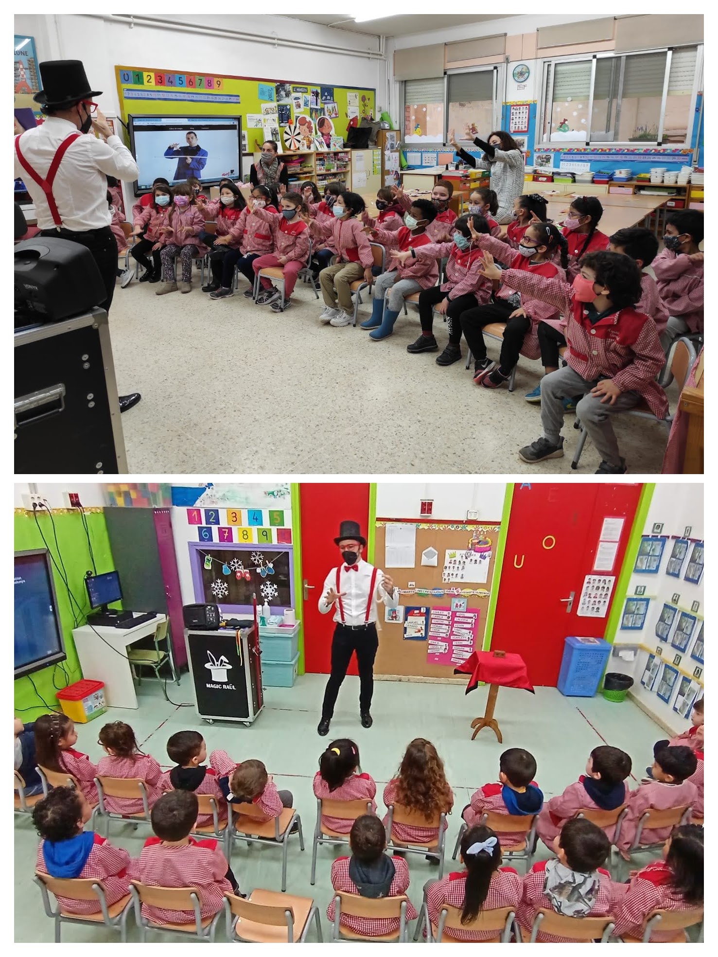 El mag Màgic Raül ens ha visitat a les nostres classes i ens ha ofert el seu espectacle de màgia “Vareta màgica”. Ens ha sorprès amb diferents trucs amb mocadors, cordes, discos, cèrcols, “plastidecors”, dibuixos… i amb una taula voladora!
