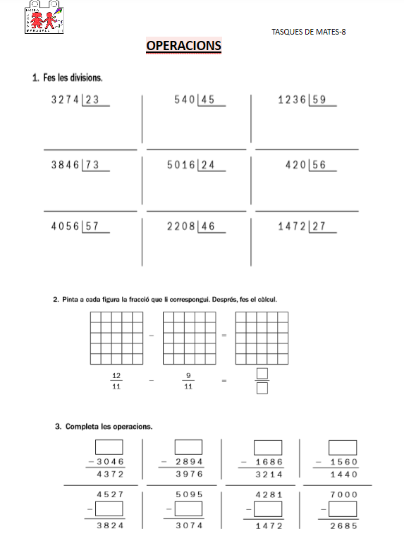 Aquí us deixo la tasca d’aquesta setmana de matemàtiques. Sobretot, les operacions, feu-les concentrats, en un lloc que sigui tranquil i sense distraccions.