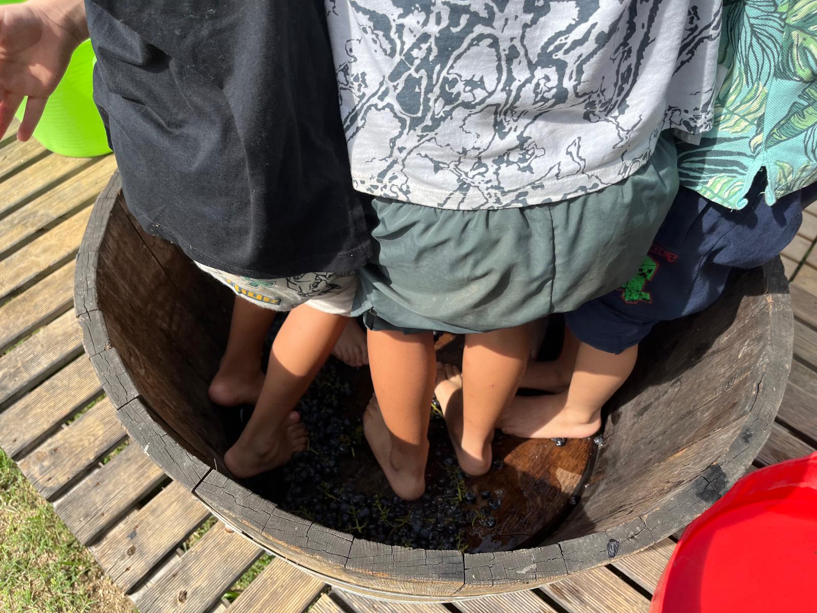 Vam poder collir el raïm omplir les senalles i fer l’aixafada de manera tradicional, amb els peus nus.