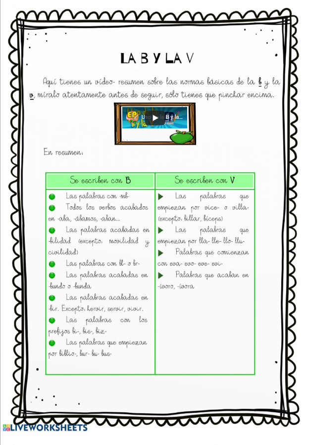 Esa ficha podemos ampliarla con esta otra, que trata también ortografía de la B y la V.