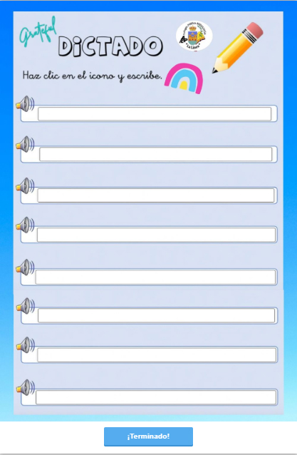 Para realizar este ejercicio, tan solo debemos hacer clic en el icono del altavoz en cada reglón y escuchar lo que se nos dicta, para posteriormente escribirlo en cada línea.
