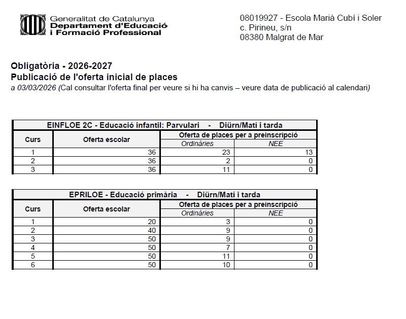 Consulta de l’oferta curs 2026-2027