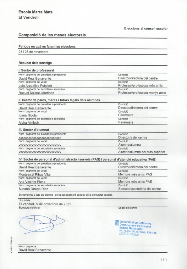 A continuació trobareu publicades les candidatures que es presenten per la renovació dels membres dels diferents sectors del consell escolar: