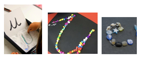 Ho podeu fer amb retoladors, colors, pintura, farina, sal, etc. També es poden resseguir les lletres amb llegums, pasta, cereals, pedretes …