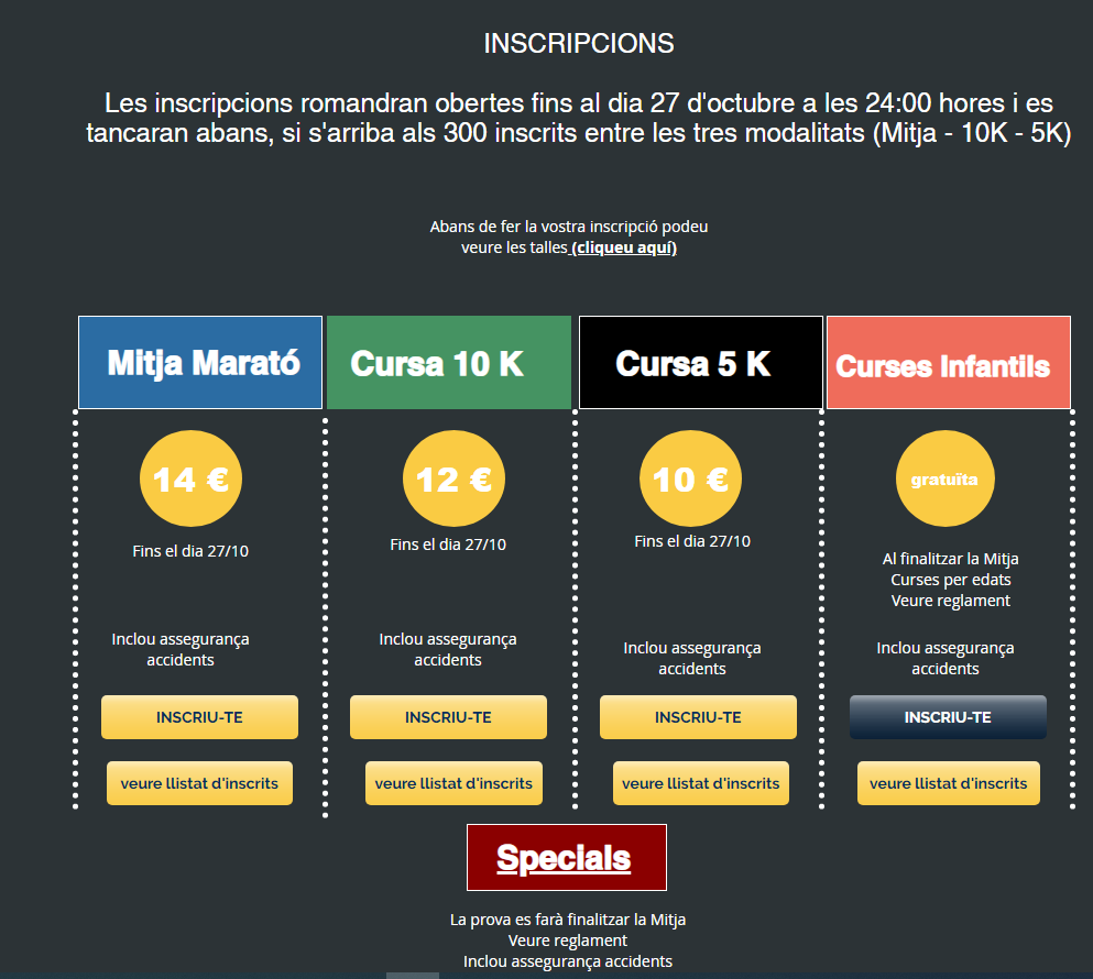 El proper dia 31 d’octubre tindrà lloc la 34a MITJA MARATÓ DEL VENDRELL i us convidem a participar de les curses infantils gratuïtes 325m, 800 m i Milla, així com de la cursa d’ Specials.
