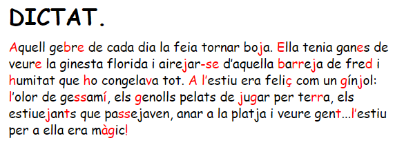 També us podeu preparar el següent dictat i fer-ho a la vostra llibreta.