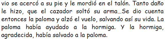 ¿Por qué crees que la hormiga ayudó a la paloma? Razona tu respuesta en el cuaderno.