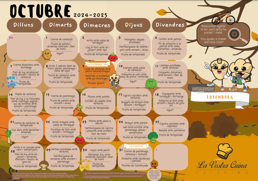 Ja teniu disponible el menú de menjador del mes d’octubre.