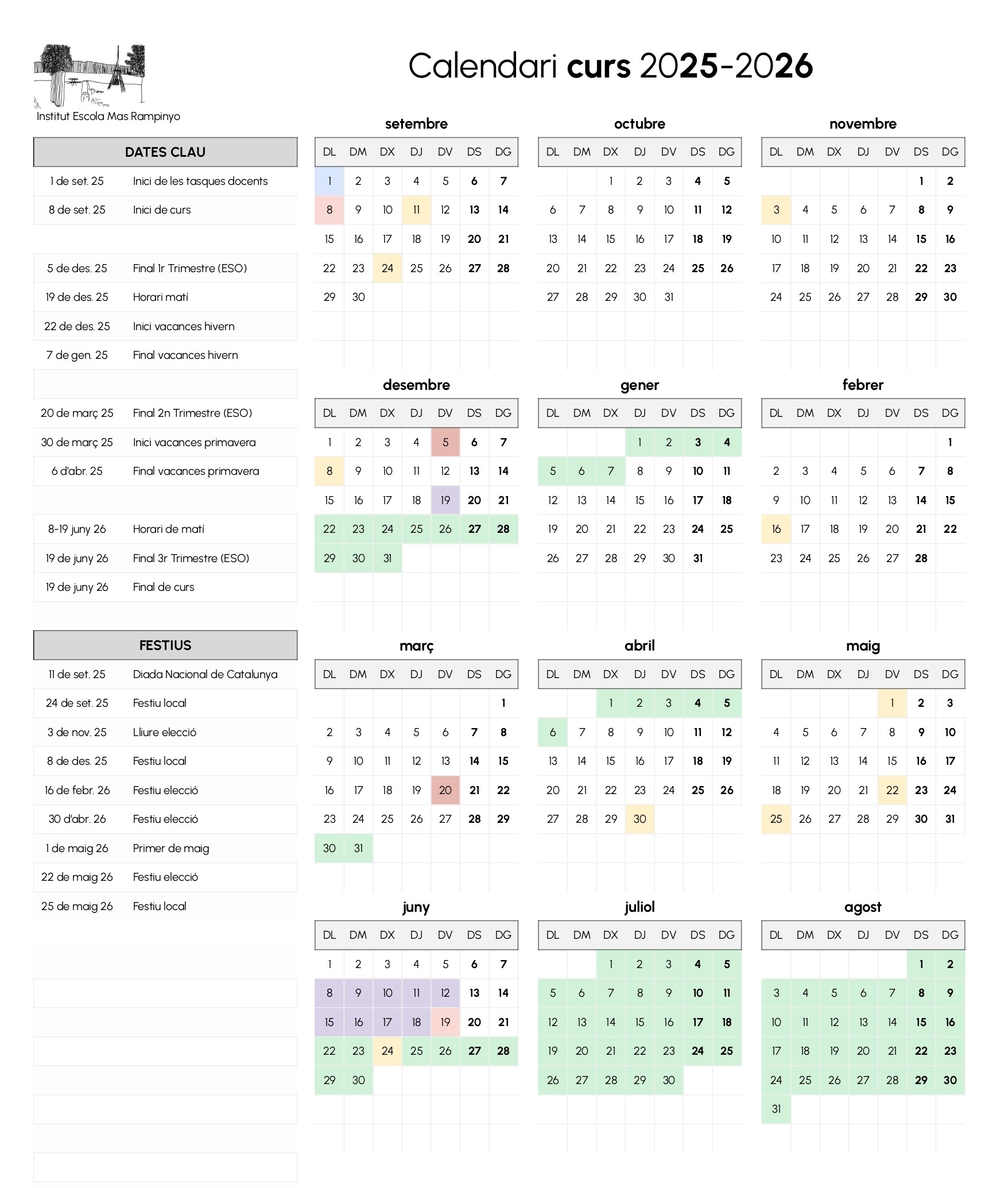 Inici de curs infantil, primària i secundària 8 de setembre de 2025