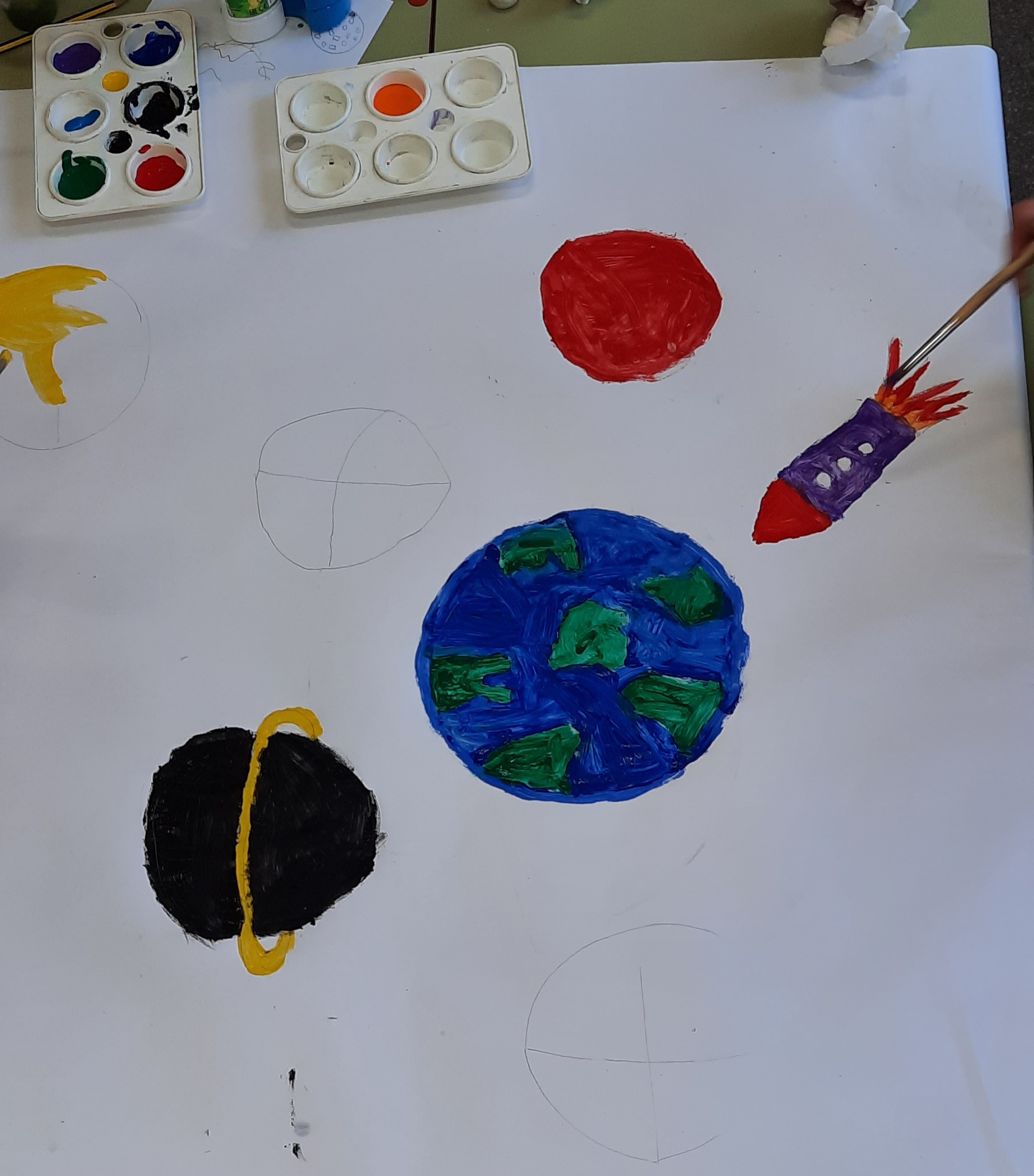 Primer dimecres després de vacances i en grups de 4 ens hem de posar d’acord en què ens agradaria dibuixar. Parlem, negociem i fem uns murals molt divertits i xulos. No val dibuixar cadascú el que vulgui, ha de tenir una orientació, un sentit…