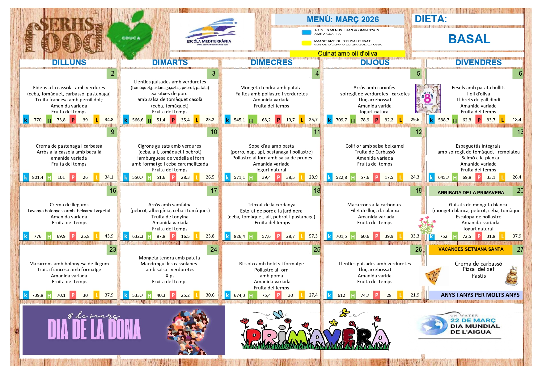 Menjador escolar Circular Benvinguda Família_ ESCOLA MEDITERRÀNIA 2023 -2024 PROJECTE MENJADOR SESMAR Manual APP menjador PROJECTE ELS SENTITS PROJECTE EDUCATIU MENJADOR 23/24 INSCRIPCIÓ MENJADOR Codi de centre : 50222 PROJECTE HORA LLEURE EDUCATIU MENÚ MARÇ 2026