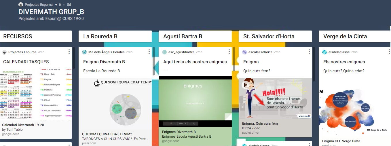 En aquest sentit, el principal mitjà de comunicació que s’utilitza és el padlet, un mur interactiu en què cada centre penja les activitats que proposa, i respon a les activitats proposades pels demés. Però se n’utilitzen molts mitjans més, com el prezzi, el vyond, el powtoon, etc.