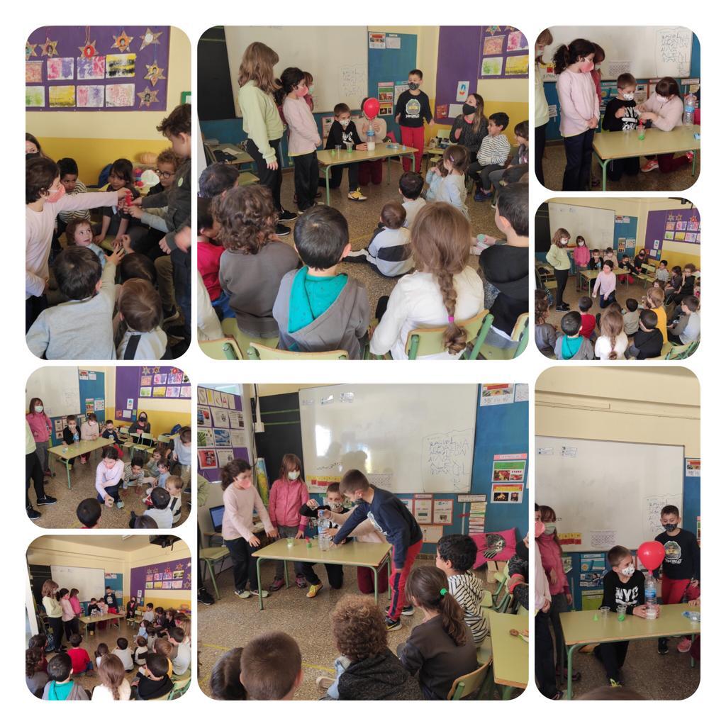 Aquesta setmana, en motiu de la Setmana de la Ciència, els nens i les nenes de l’escola hem presentat un experiment als altres cursos.