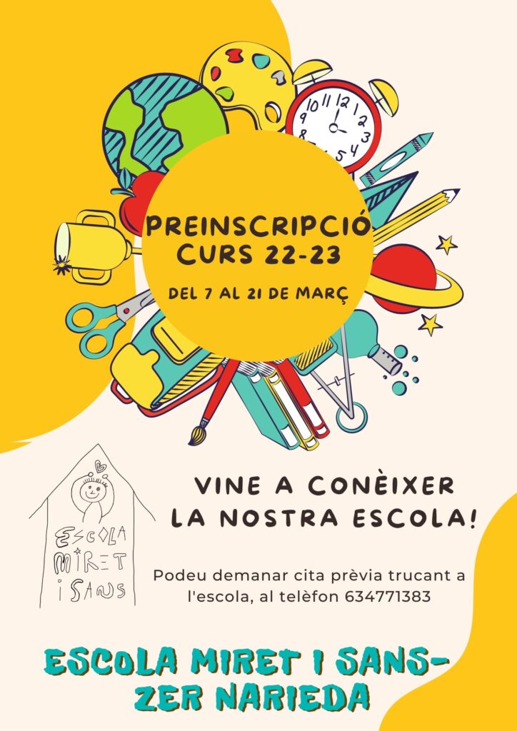 Del 7 al 21 de març s’obre el procés de Preinscripció per l’alumnat que fan els 3 anys durant l’any 2022.