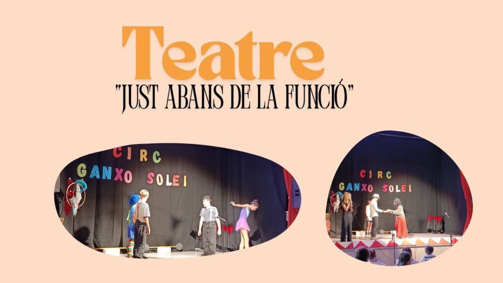 El passat dijous 5 de juny a les 15h de la tarda l’alumnat de cicle mitjà i cicle superior de l’escola va representar l’obra de teatre «Just abans de la funció». En aquesta hi va participar també tot l’alumnat de l’escola amb diferents actuacions i cançons. Si cliqueu a imatges podreu gaudir d’un recull de fotos i vídeos ben divertits. Ens ho vam passar molt bé!
