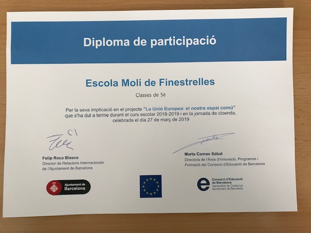 01/04/19Els alumnes de cinquè van participar del projecte educatiu “UE, el nostre espai comú”. Objectiu de coneixement i apropament de l’espai europeu, des de la perspectiva de la diversitat.