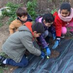 Els nens i nenes de cicle inicial hem estat treballant a l’hort per posar-lo al dia! Hem començat a plantar les primeres hortalisses: enciams i alls tendres. També hem adobat la terra per plantar noves plantes i hem arrencat les males herbes que han anat sortint.