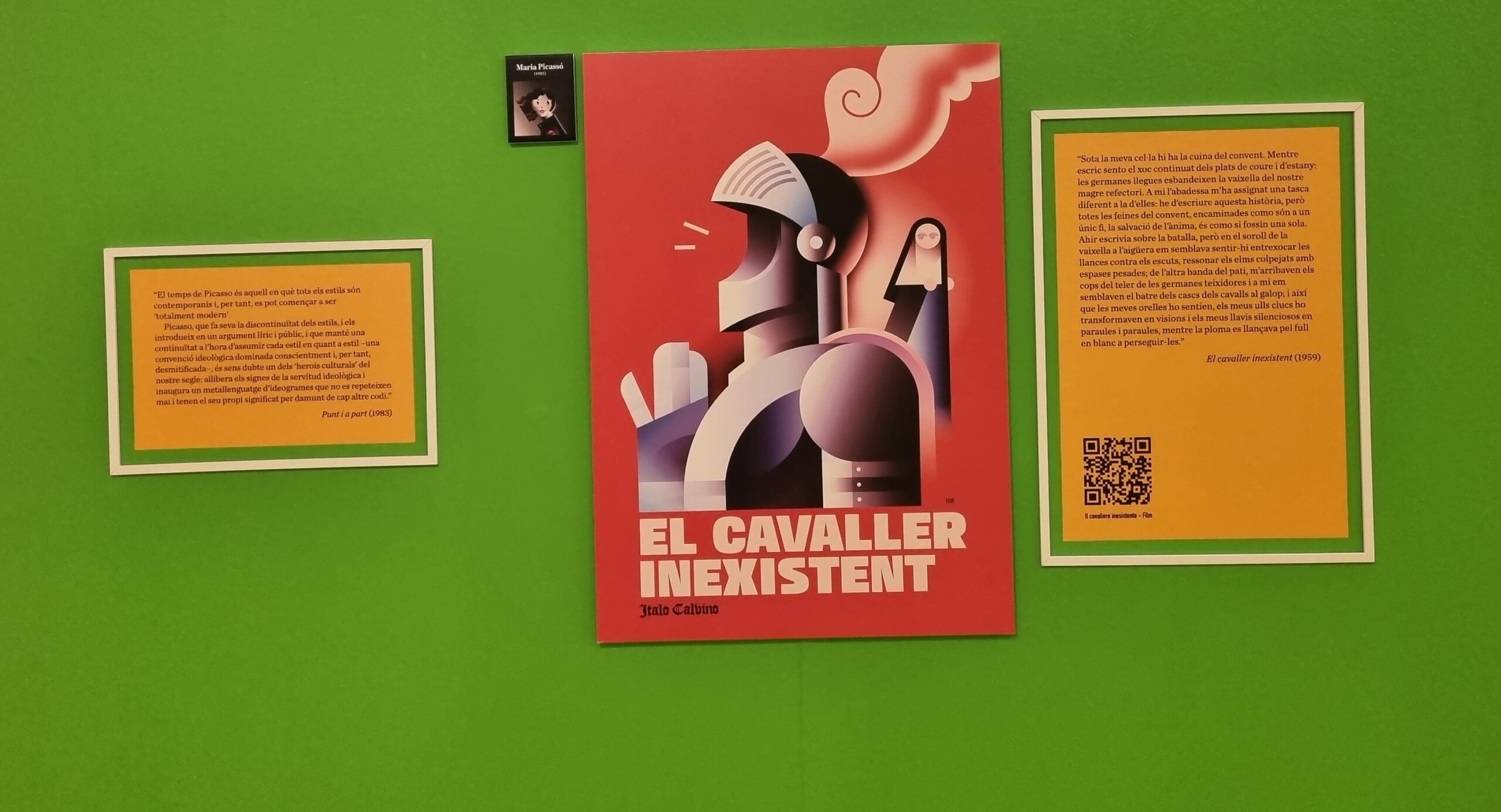 La biblioteca acull l’exposició dedicada a Italo Calvino, del 2 de novembre al 15 de gener. Aquest matí hem dibuixat al Vescomte Migpartit, un personatge de l’escriptor italià.