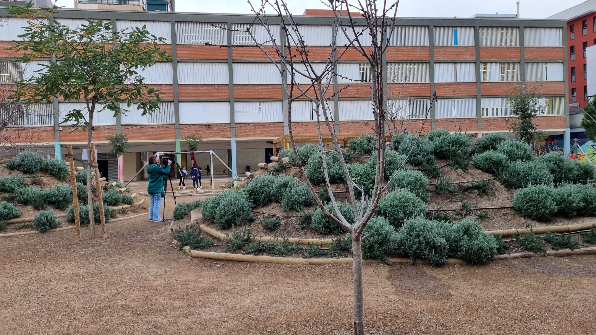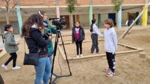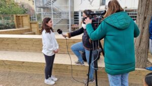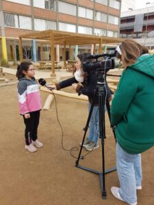 Avui ha vingut betevé a gravar-nos durant la sessió d’educació física al nostre pati nou.