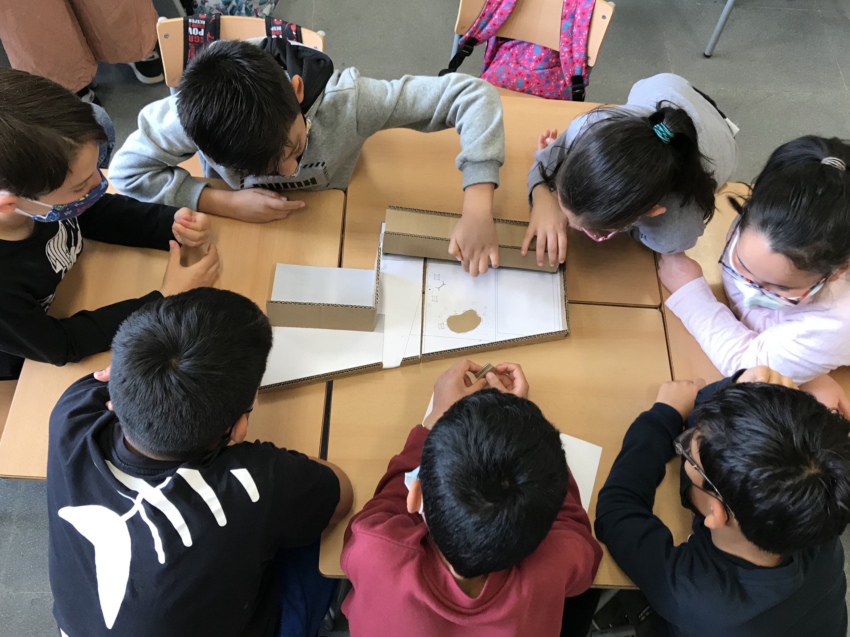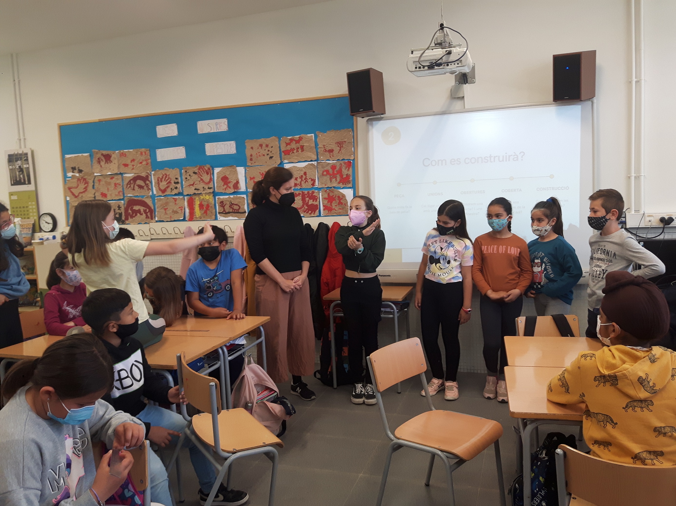 És la Setmana d’Arquitectura i els nens i les nenes de 4t hem participat en el taller d’Arquitectura a les Aules amb el tema “repensar els espais interiors i exteriors”.