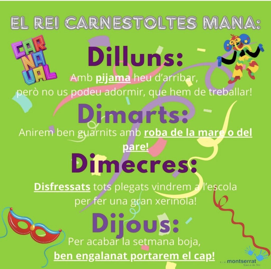 Famílies, comença la disbauxa! Comença el Carnaval a l’escola!! Aquí teniu les consignes que ens ha donat el Rei i