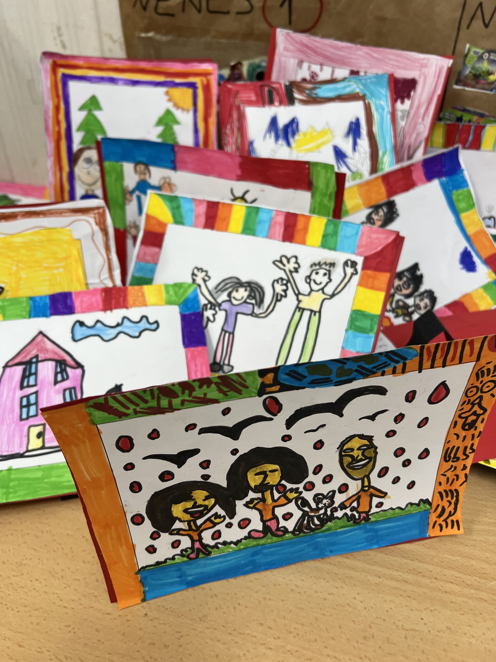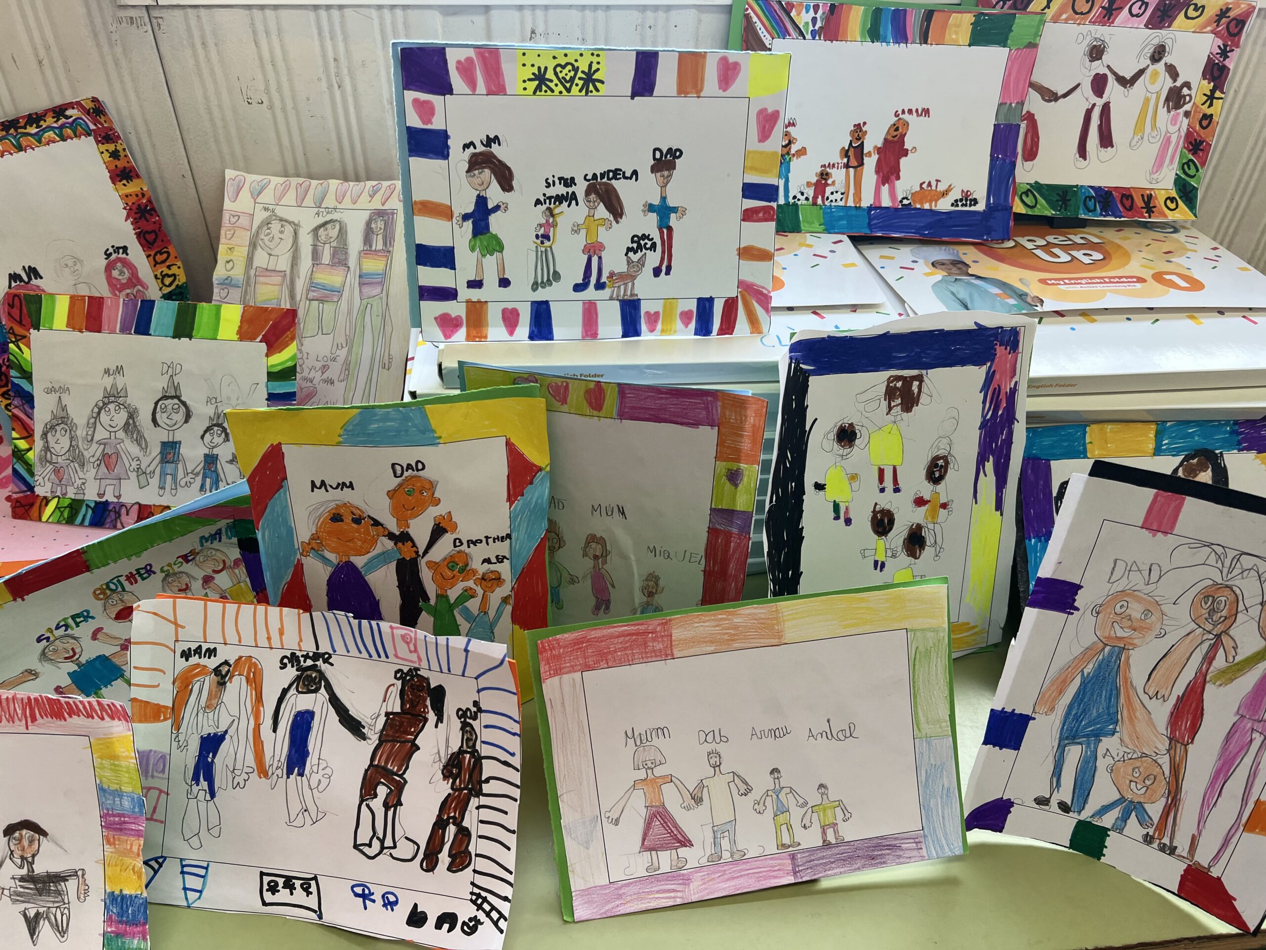 Com a projecte final, ens hem convertit en petits fotògrafs… però sense càmera! Amb paper, colors i tones d’imaginació, cada alumne ha creat la seva pròpia “fotografia” familiar. El resultat són uns dibuixos preciosos i únics on han plasmat els seus éssers estimats.