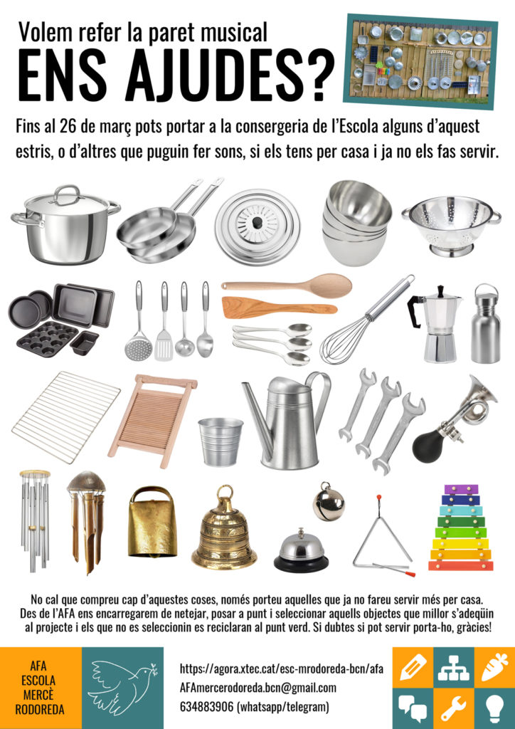 Si tens idees que ajudin a millorar l’Escola o vols participar de les que es fan, no dubtis a contactar amb l’AFA!