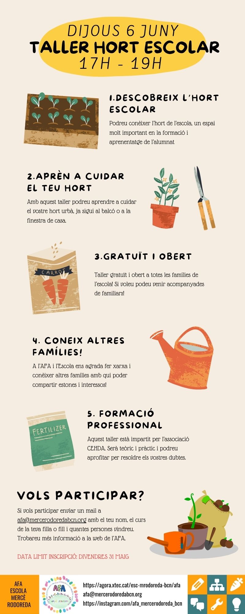 Animeu-vos-hi!! És una oportunitat perfecta per aprendre sobre l’hort que tenen els nostres infants a l’escola així com aprendre coses que podrem fer a casa, ja sigui a l’interior com a un balcó o terrassa.