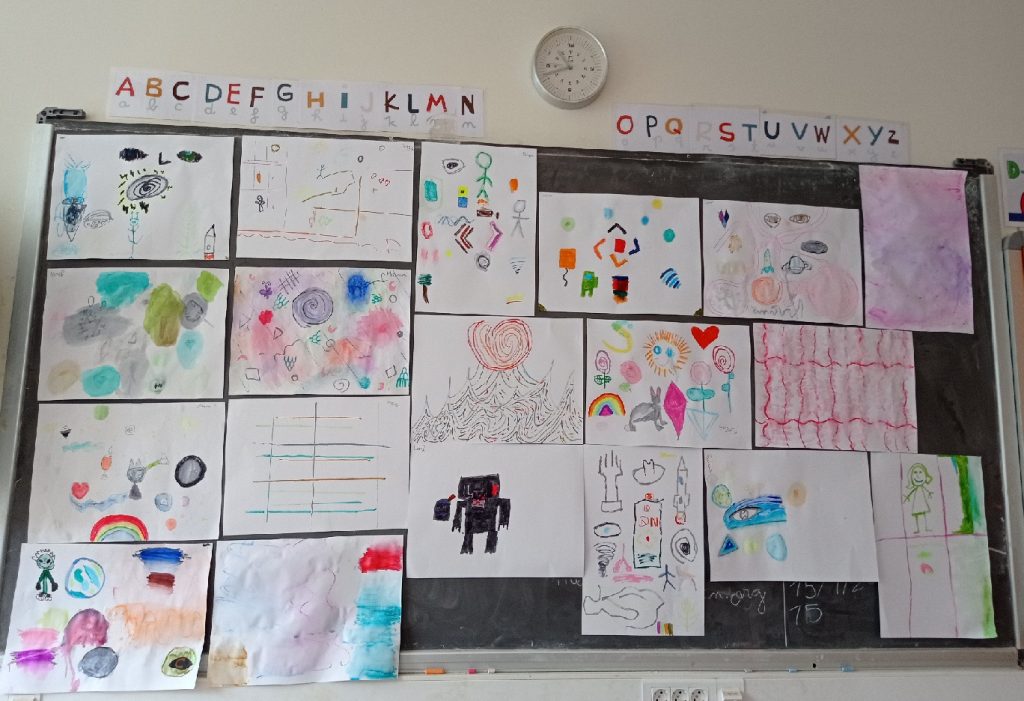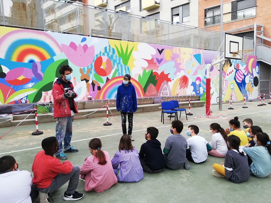 L’alumnat de 4t A i 4t C fa uns dies va estar col·laborant en l’elaboració del mural del pati amb