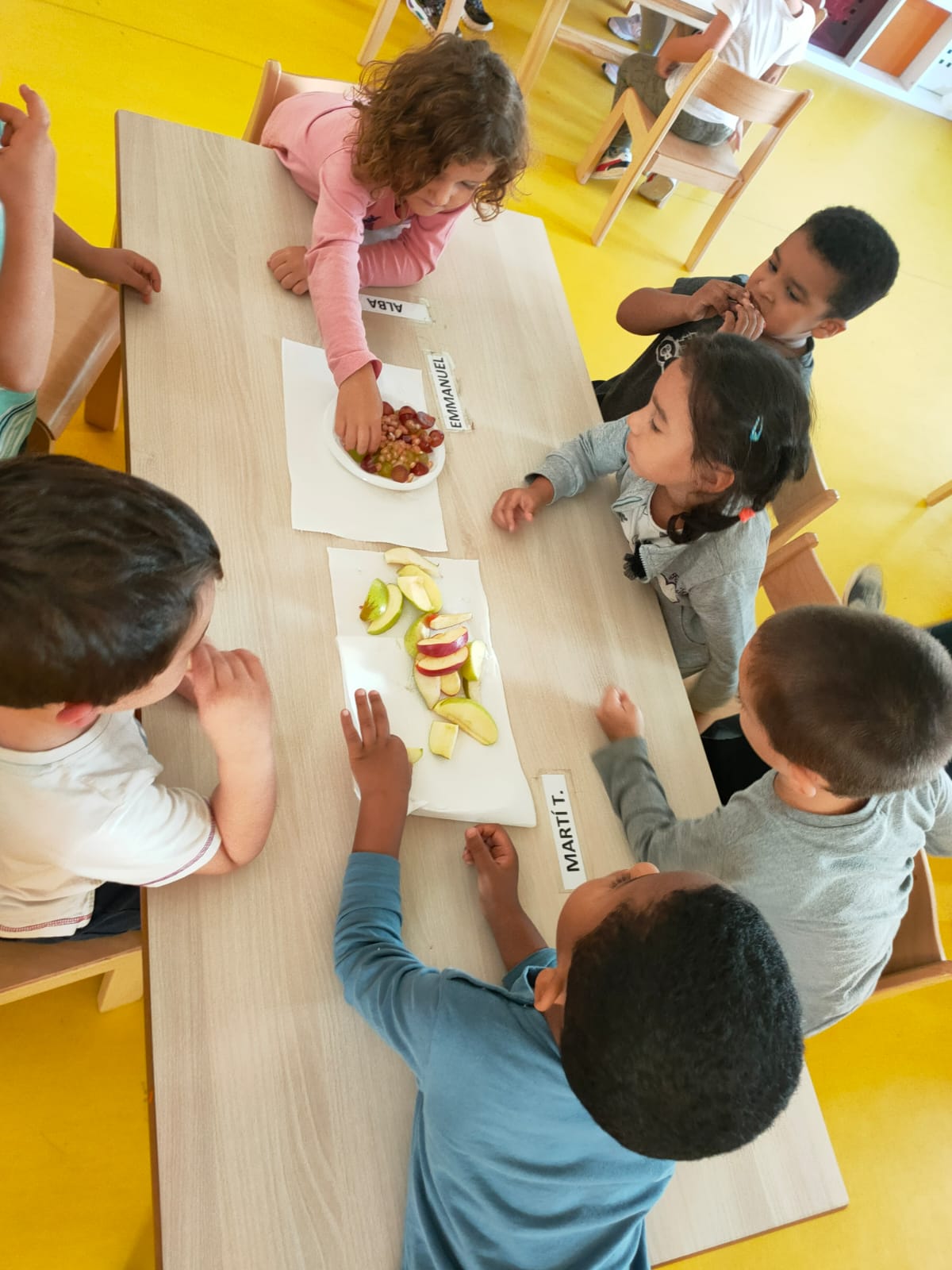 Aprofitant que aquests dies ha començat a fer una mica de fred i que treballem la tardor, hem fet un tastet de fruites de la tardor: poma, pera, raïm i magranes!