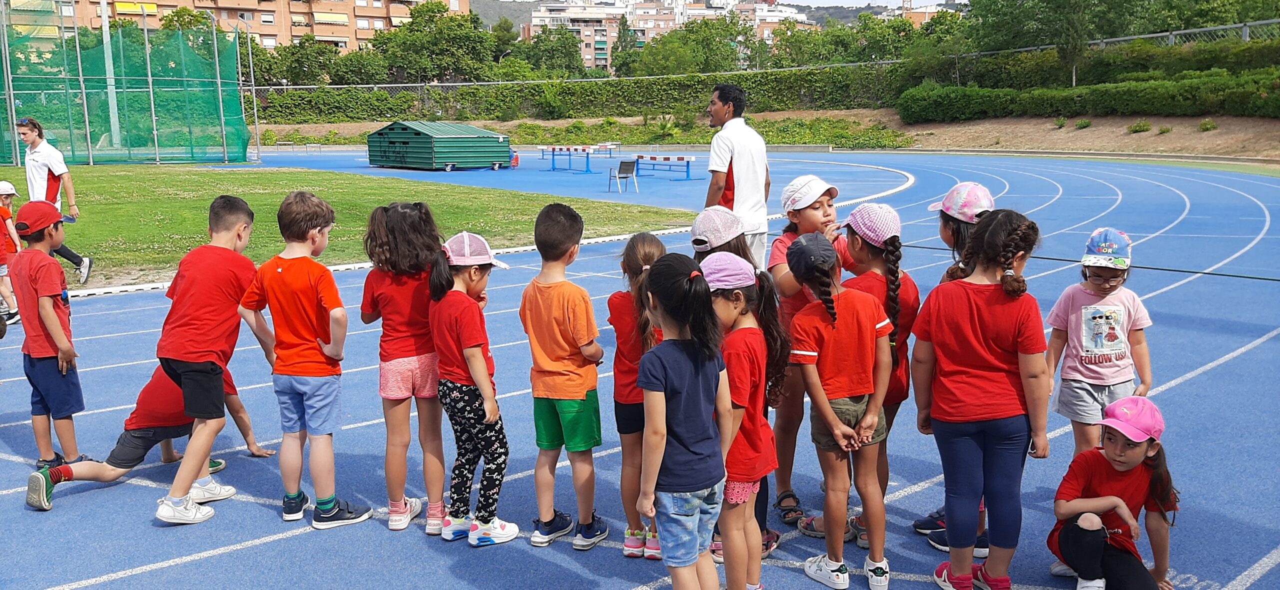 Fa uns dies vam anar a Can Dragó a fer atletisme. Per sort el dia va sortir força ennuvolat i, sense passar molta calor tots els infants van poder practicar diverses disciplines atlètiques com ara carreres de 200 i 400 metres, carreres de relleus i salt de longitud però sobre tot va ser un matí de germanor entre le dues classes i d’animar-se entre companys a fer-ho bé,