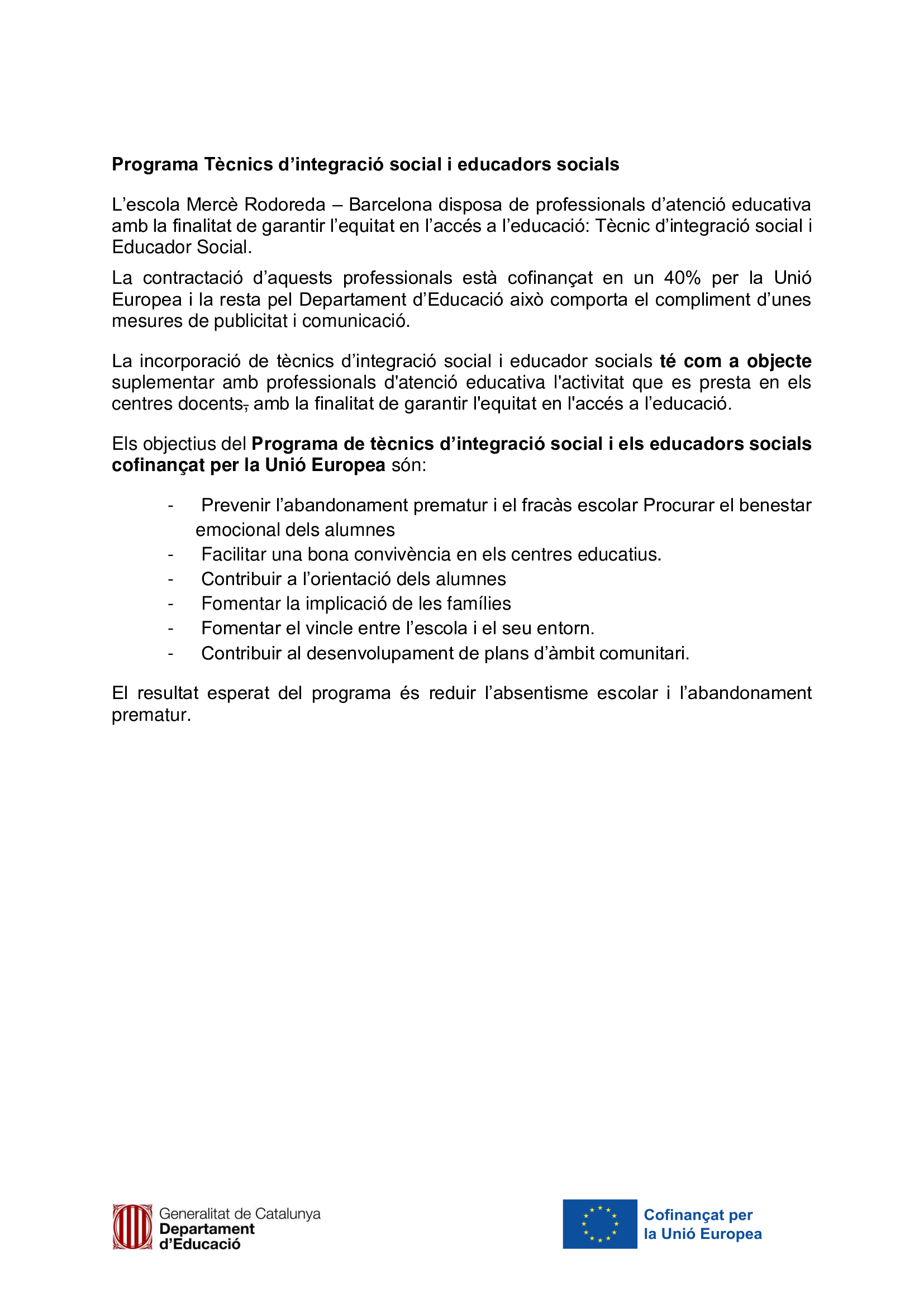 Programa Tècnics d’integració social i educadors socials Feu un comentari / Per Escola / 14 de novembre de 2023 / Escola Mercè Rodoreda General Portada