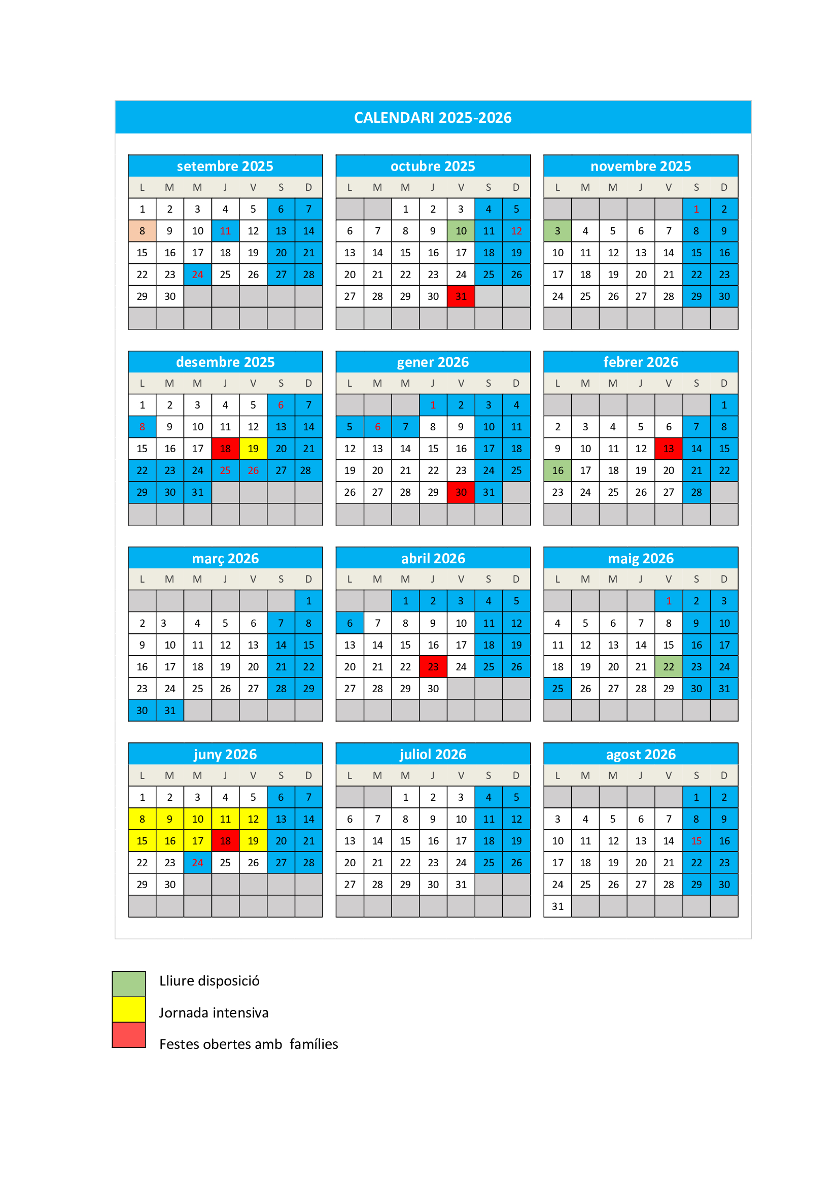 Calendari del curs