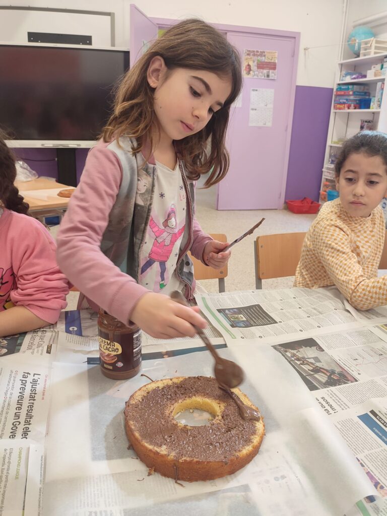 Els alumnes, prèviament al dia de l’elaboració, van decidir per classes quin tipus de mona voldrien fer. Quin tipus de massa, farcit, decoració, figures de xocolata, etc. Un cop triat tot la mestra va encarregar-se de tenir tota la llista a punt pel divendres.