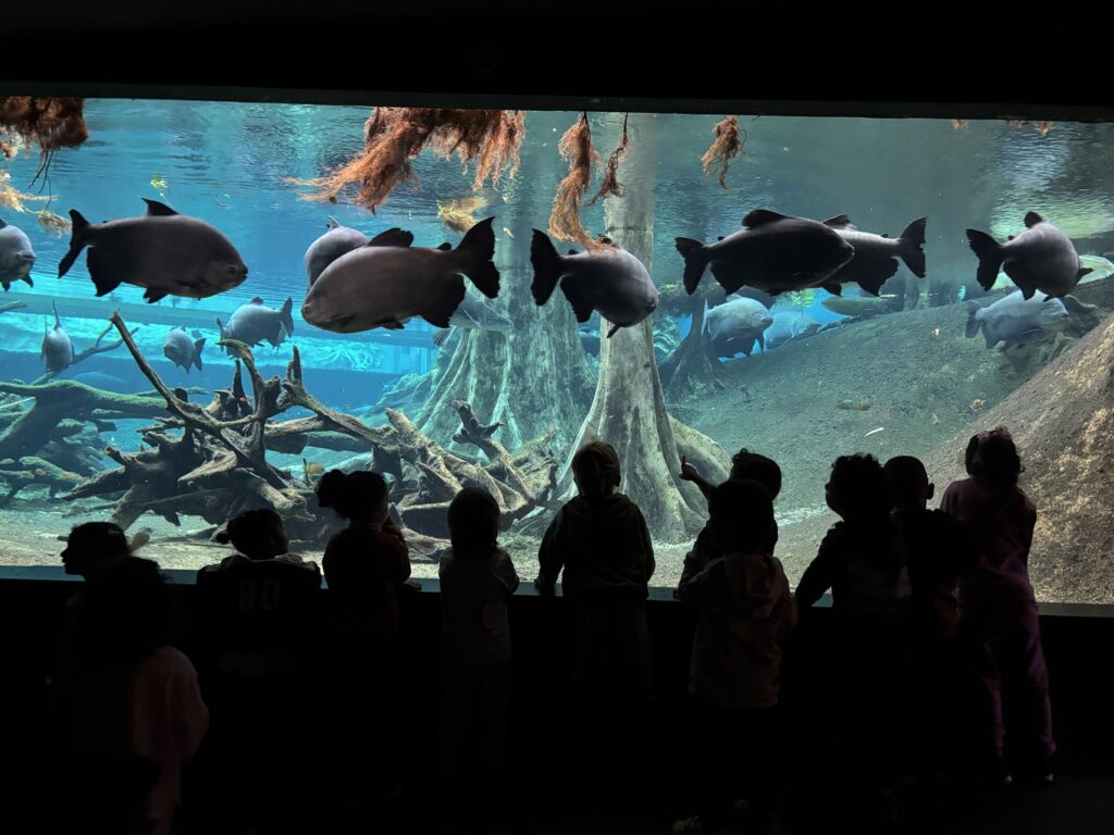 Un dels moments més màgics de la sortida va ser la visita al Bosc Inundat. Els infants van quedar fascinats en veure de tan a prop els seus animals: peixos enormes, ocells, serps, cocodrils i moltes altres espècies que conviuen en aquest ecosistema tan especial. Les mirades de sorpresa i els comentaris espontanis mostraven perfectament la il·lusió del moment.