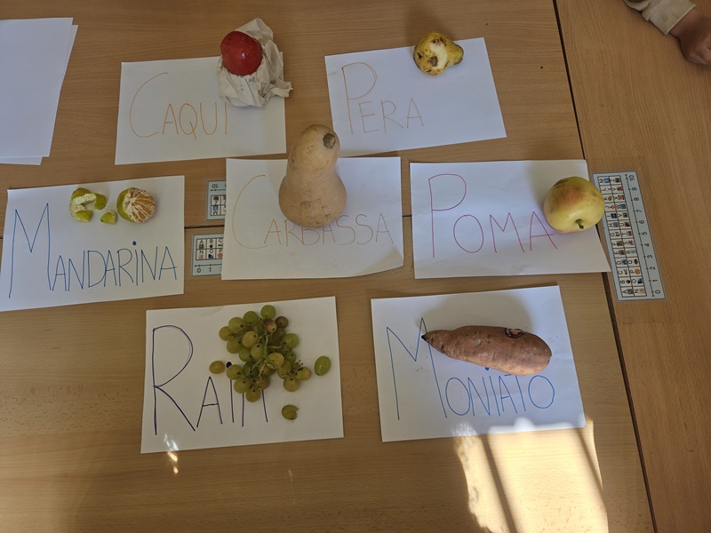 Abans d’anar al mercat vam fer una llista amb què volíem comprar. Un cop, a l’escola, hem olorat, tastat i observat com són per dins i per fora les fruites i verdures que vam comprar. Ens hem fet hipòtesis sobre com creiem que són i quin gust tenen. I també hem compartit opinions, entre tots/es, hem arribat a la conclusió que algunes verdures cal cuinar-les perquè no es poden menjar crues. Continuarem treballant al voltant d’aquest tema perquè engresca molt als infants i els permet fer un aprenentatge molt significatiu i funcional.