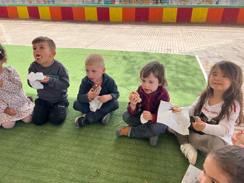 Avui al matí, seguint la tradició, hem fet la MONA entre tots els nens i nenes de la classe i a la tarda ens l’hem menjat per berenar.